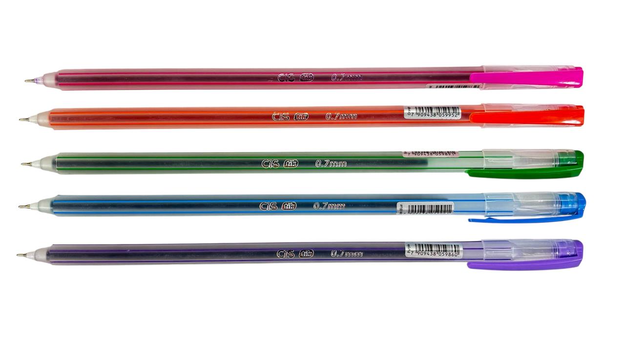 O kit com 5 canetas esferográficas CIS Tik 0.7mm oferece escrita suave e traço preciso para o dia a dia. Com ponta fina de 0.7mm, proporciona linhas uniformes e ideais para anotações, estudos, preenchimento de formulários e uso em escritório.