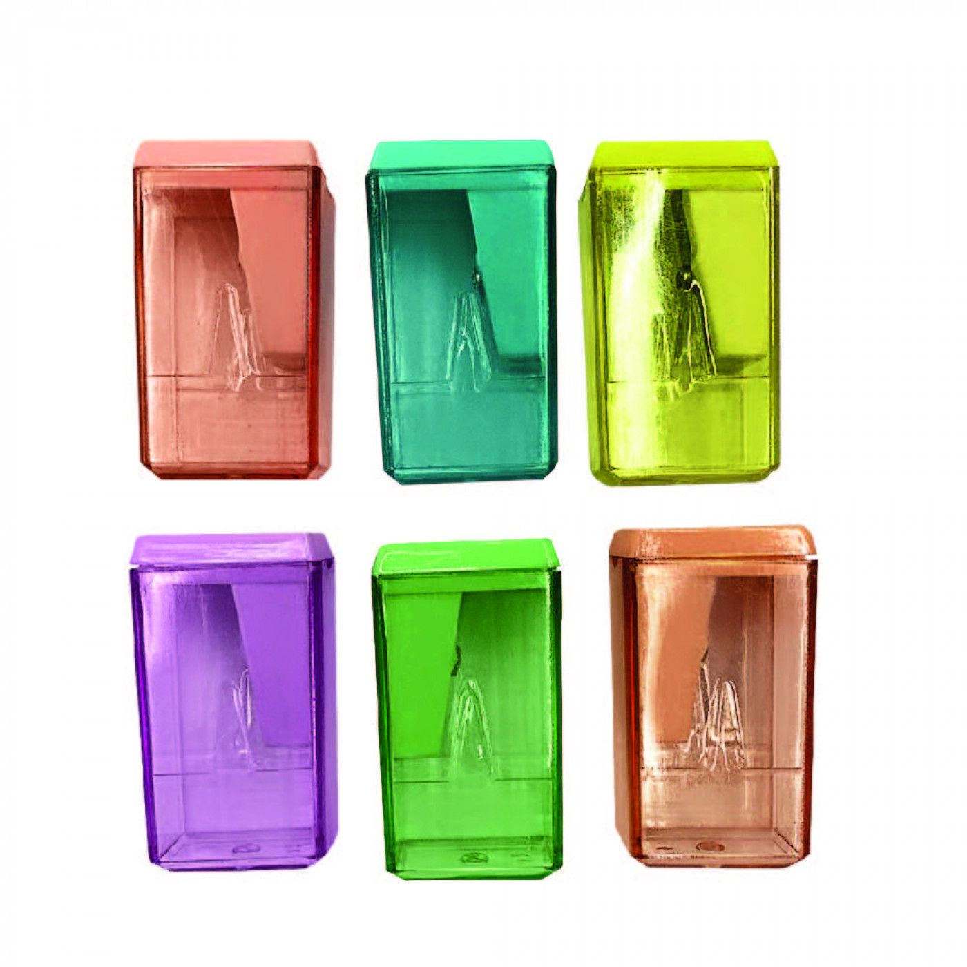 O Apontador Plástico com Coletor Retangular de 4cm é perfeito para ser levado em estojos e acompanhar o dia de estudantes e profissionais.