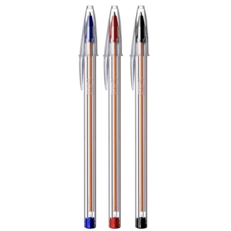 O tradicional corpo transparente da linha BIC Cristal permite visualizar facilmente o nível de tinta, enquanto o formato hexagonal oferece melhor pegada e evita que a caneta role sobre a mesa.