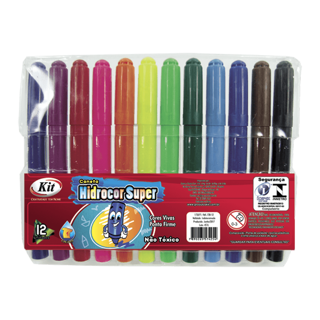 A Caneta Hidrocor Jumbo 12 Cores da KIT oferece traçado firme e vibrante, ideal para atividades escolares, artísticas e recreativas. Possui corpo mais grosso para melhor pegada, ponta resistente e tinta de alta cobertura. As cores vivas garantem desenhos marcantes e preenchimento uniforme, perfeita para crianças e adultos.