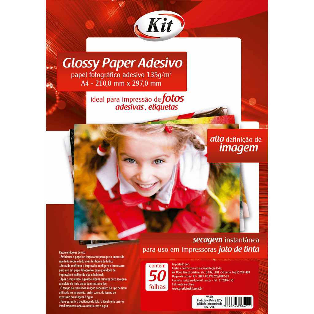 O Glossy Paper Adesivo A4 135g Kit, com 50 folhas é ideal para produção de etiquetas, adesivos personalizados, rótulos, lembrancinhas, papelaria criativa e trabalhos gráficos. Possui acabamento brilhante que proporciona cores mais vivas e excelente definição de imagem.