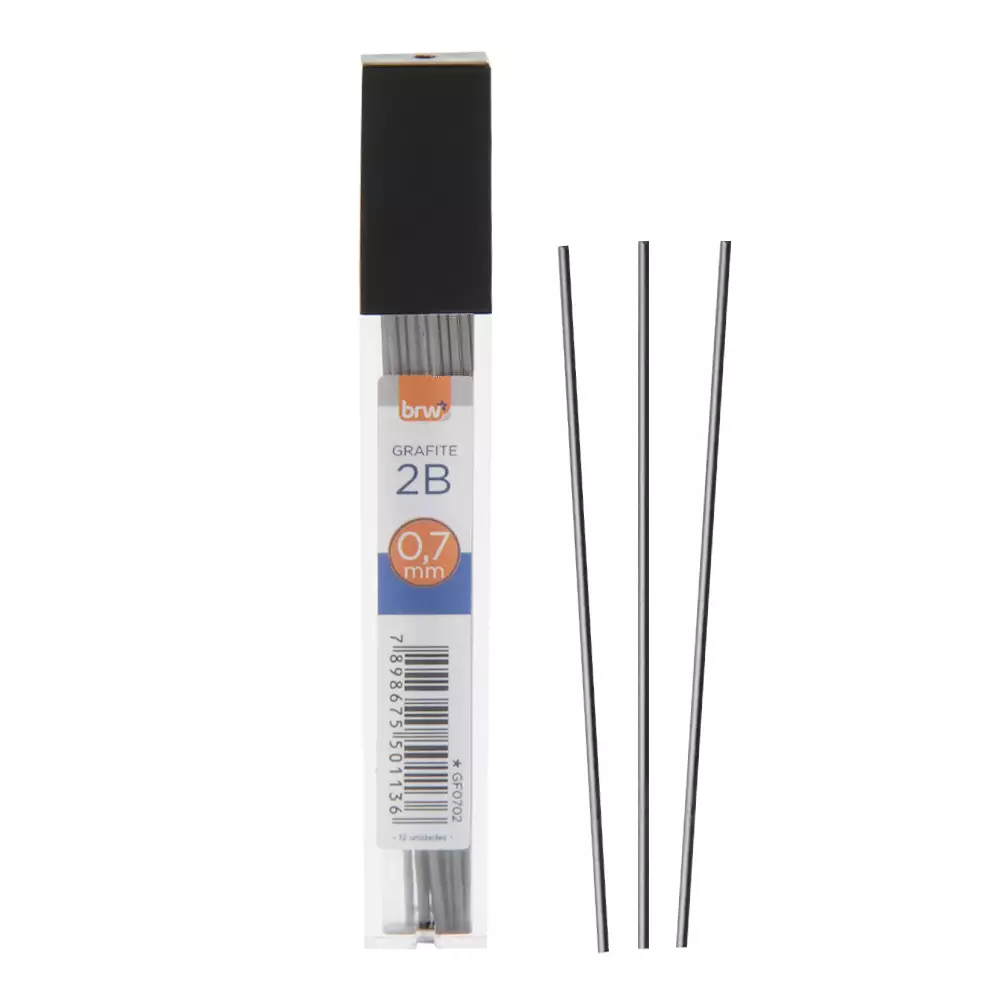 O Grafite BRW 0.7mm 2B com 12 unidades é ideal para quem busca escrita suave, traço preciso e resistência no dia a dia.