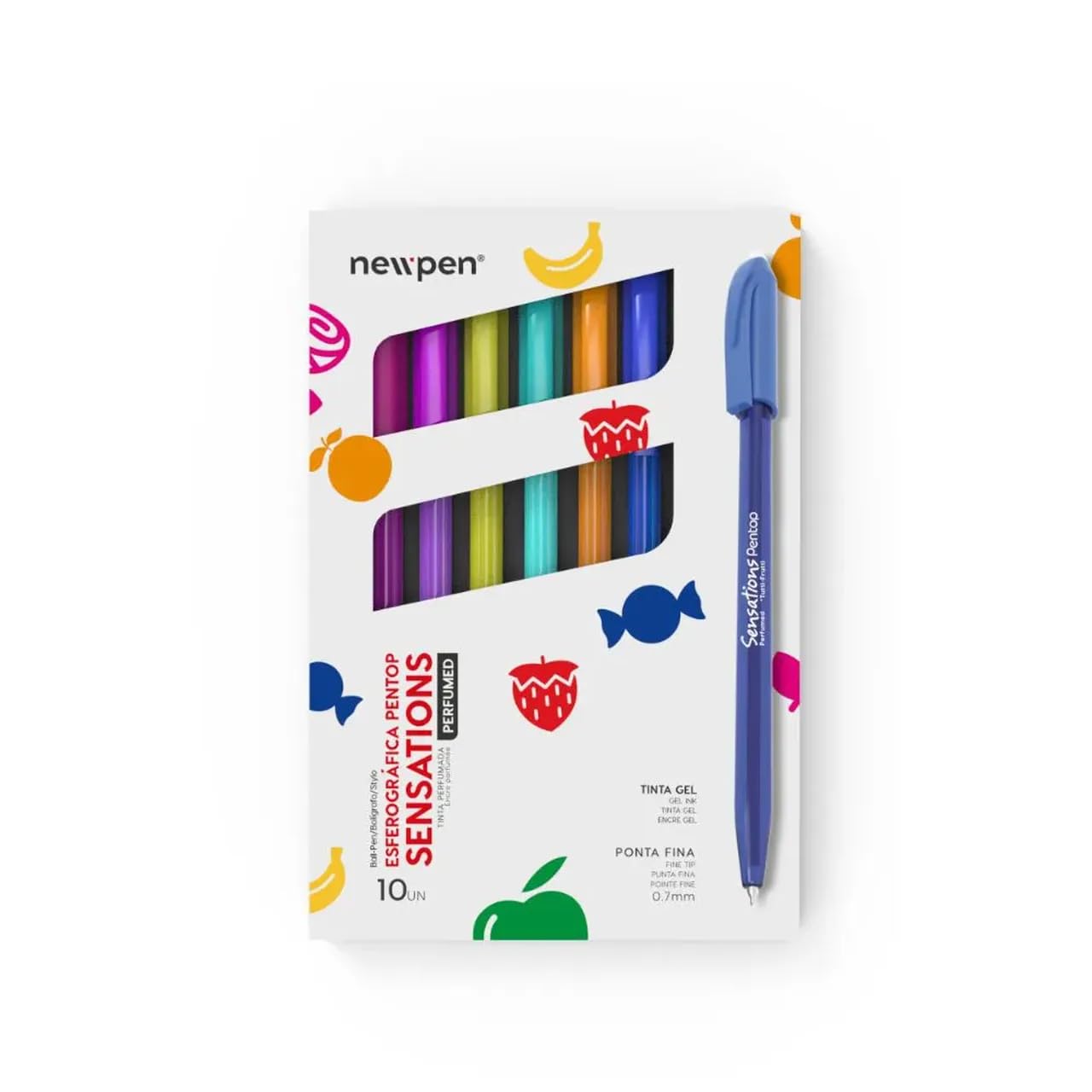O kit com 10 canetas esferográficas Pentop perfumadas 0,7mm da Newpen é ideal para quem busca escrita macia aliada a cores vibrantes e aromas suaves. Perfeito para uso escolar, anotações, planners, estudos e organização do dia a dia.