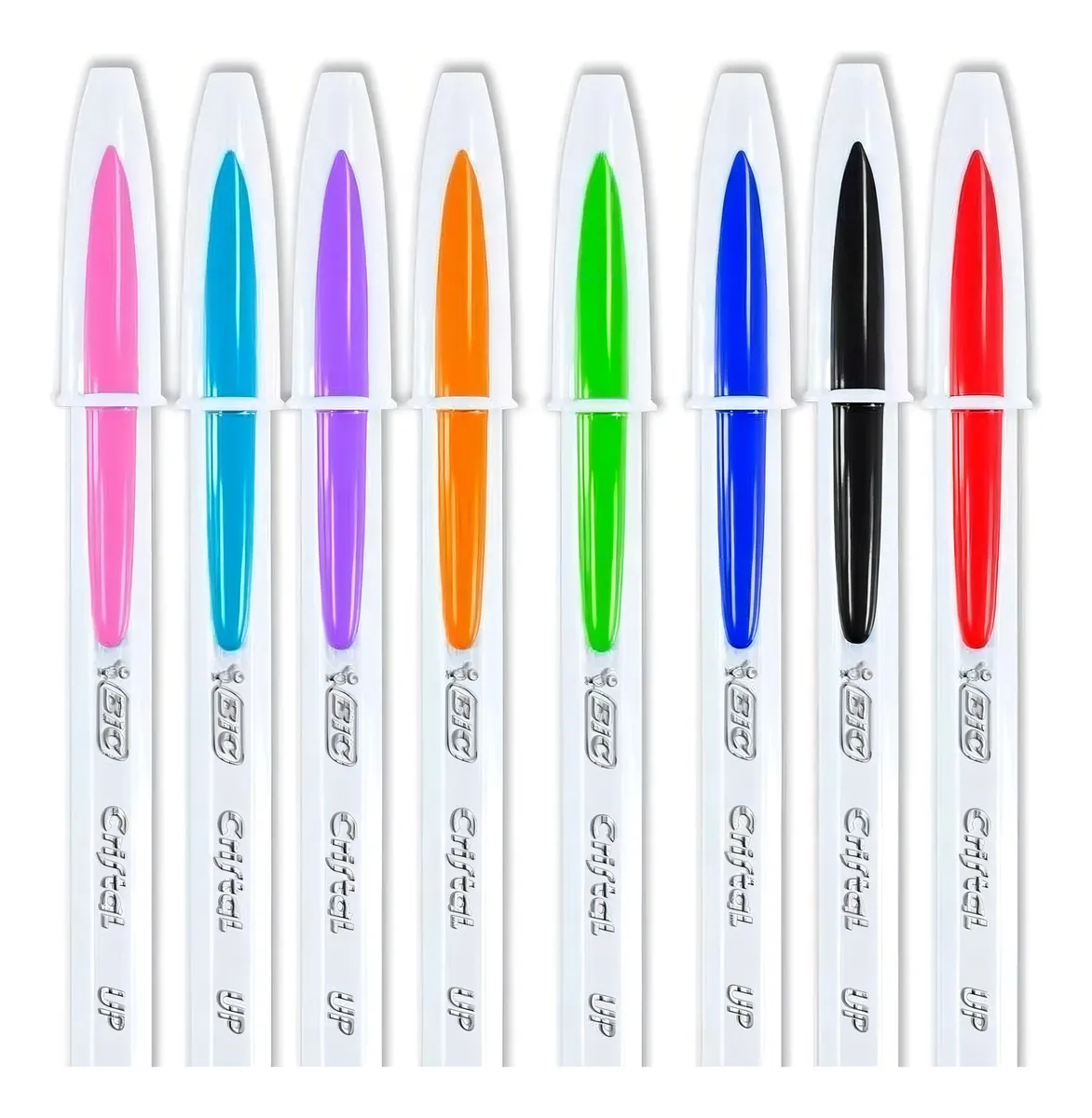 O Kit com 8 Canetas Esferográficas BIC Cristal Up 1.2mm é ideal para quem gosta de escrever com mais conforto e organizar anotações com cores diferentes no dia a dia.