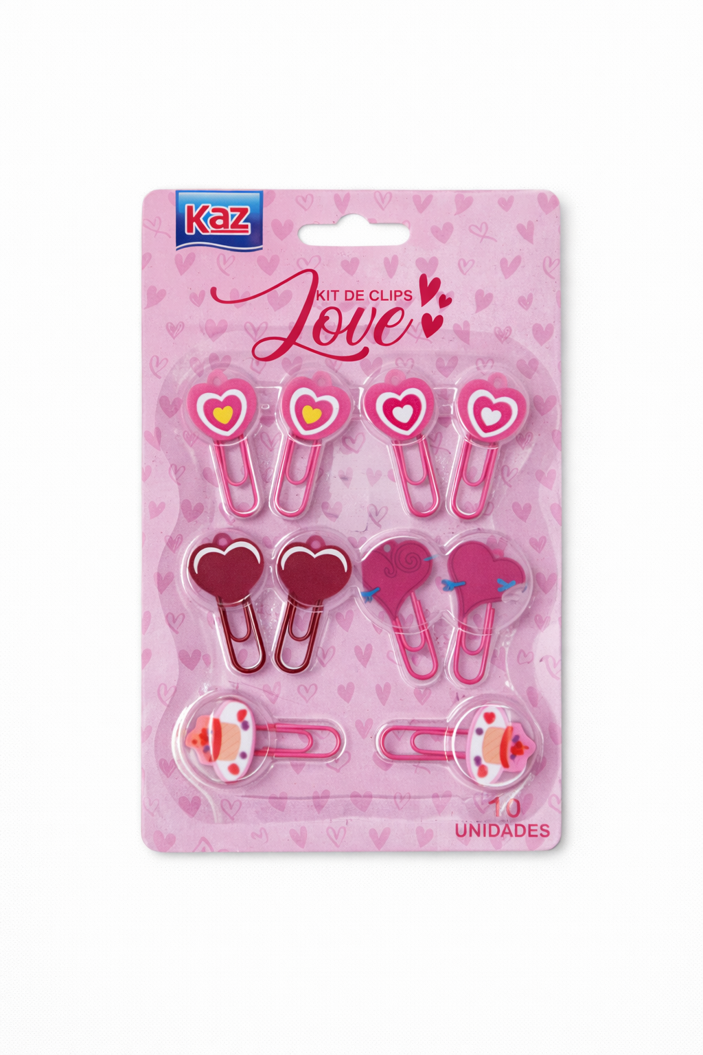 O kit de clips corações da KAZ é ideal para organizar papéis, cadernos, planners e agendas com um toque delicado e criativo. Com design em formato de coração, traz charme e personalidade para a rotina escolar, profissional ou de estudos.