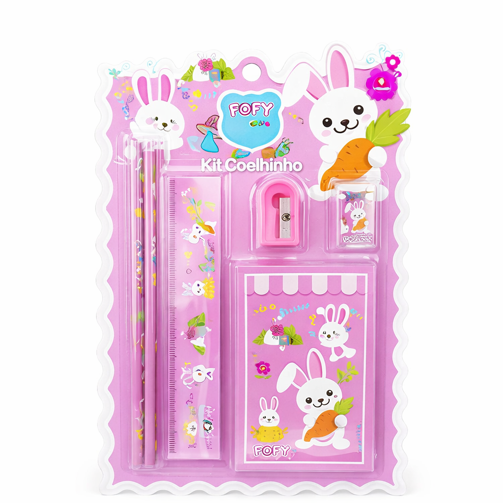 O Kit Coelhinho 6 Peças FOFY é ideal para uso escolar e atividades criativas, reunindo itens essenciais de papelaria em um conjunto completo e temático. Com design delicado inspirado em coelhinho, o kit torna o momento de escrever e desenhar mais divertido e encantador.