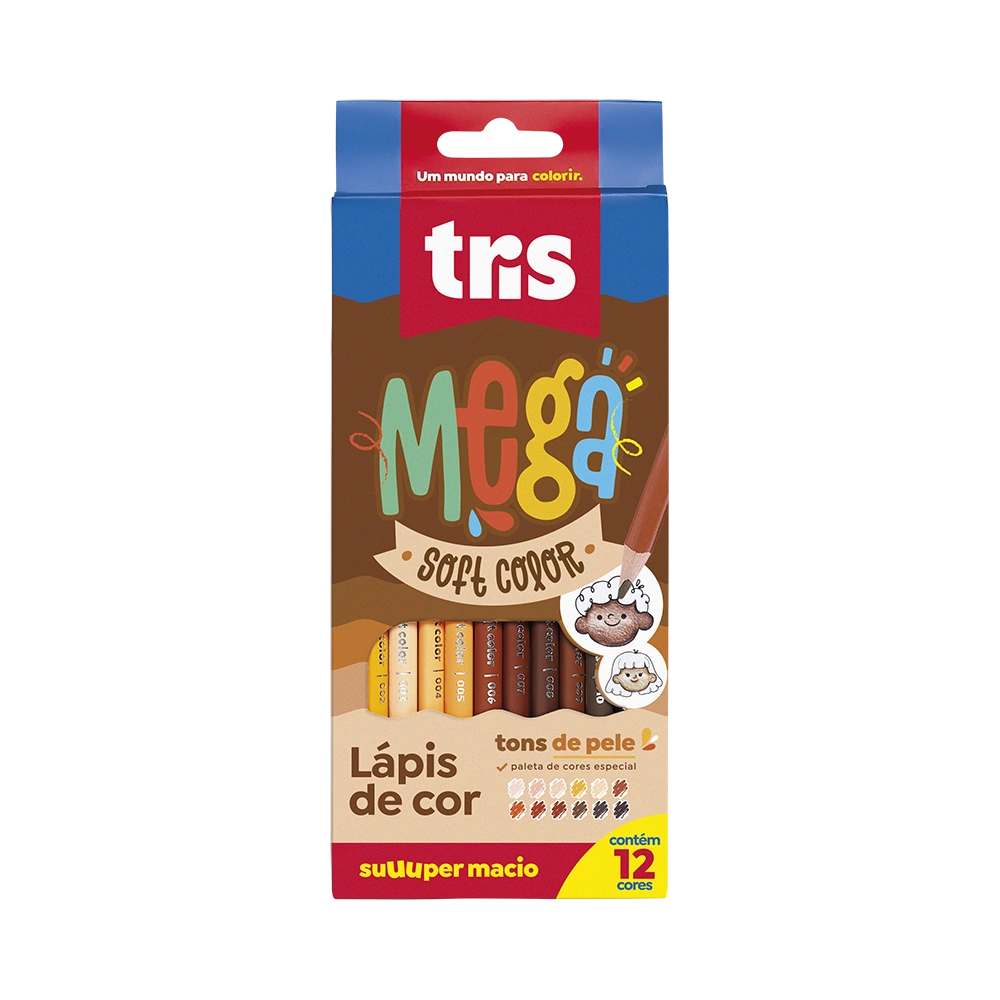 O Lápis de Cor Tris Mega Soft Color Tons de Pele 12 Cores foi desenvolvido para oferecer maior diversidade e realismo nas ilustrações, com uma seleção especial de cores que representam diferentes tons de pele.