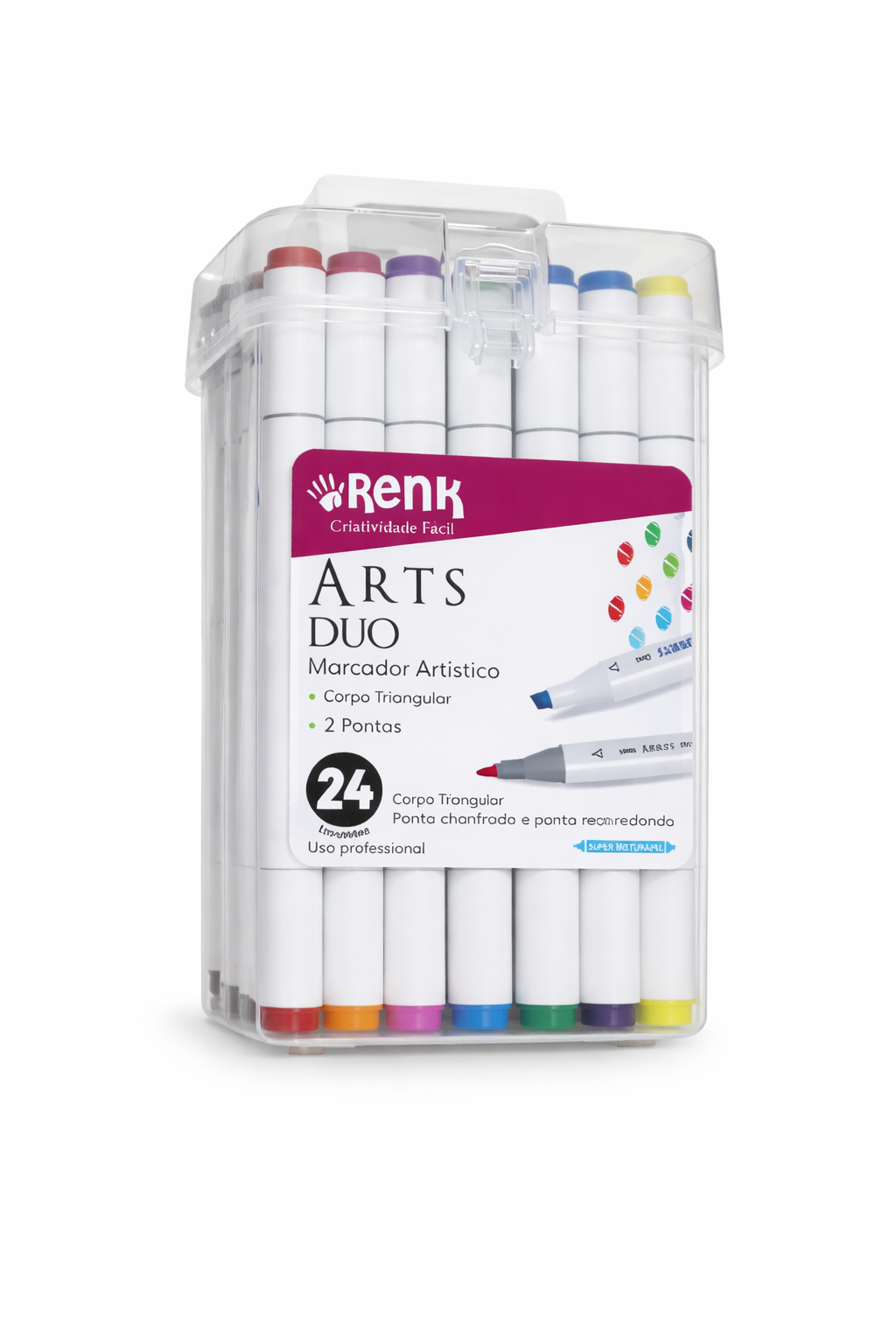 O Marcador Artístico Arts Duo Renk com 24 cores é ideal para quem busca versatilidade e qualidade profissional em desenhos, ilustrações e lettering.